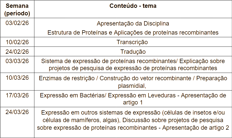 CRONOGRAMA PARTE prática – PROTEÍNAS RECOMBINANTES