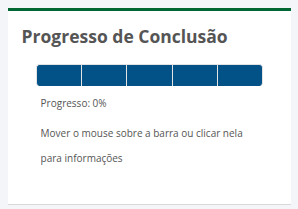 Este bloco leva o nome de Progresso de Conclusão, no qual o estudante poderá acompanhar a porcentagem de conclusão do curso.