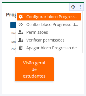 Ao centro da tela aparecerão todas as opções disponiveis de blocos para serem adicionados. Escolha o tipo clicando em cima do nome Progresso de Conclusão que o bloco será adicionado.